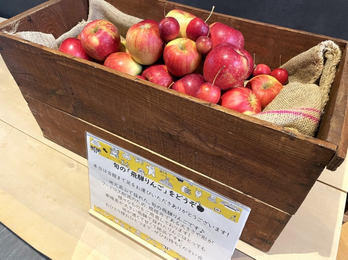 この季節は、秋に食べごろを迎える飛騨高山で取れたりんごをお配りしています(*^^*)
