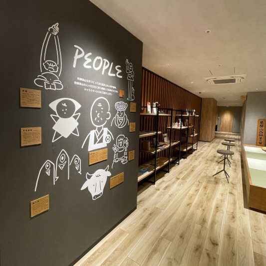 当館の柱や壁紙に、飛騨高山を代表する食べ物や歴史人物、